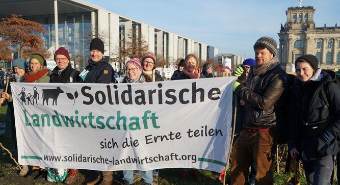 Gutes Essen braucht Zukunft - deswegen engagiert sich das Solawi Netzwerk im breiten Bündnis für eine gentechnikfreie, bäuerliche und umweltverträgliche Landwirtschaft. Eine ökologischere Landwirtschaft ist die richtige Antwort auf Klimakrise, Artensterben und Hunger in der Welt! Am 18.01.2025 gingen wir zusammen mit 60 Organisationen und etwa 9.000 Personen in Berlin auf die Strasse.