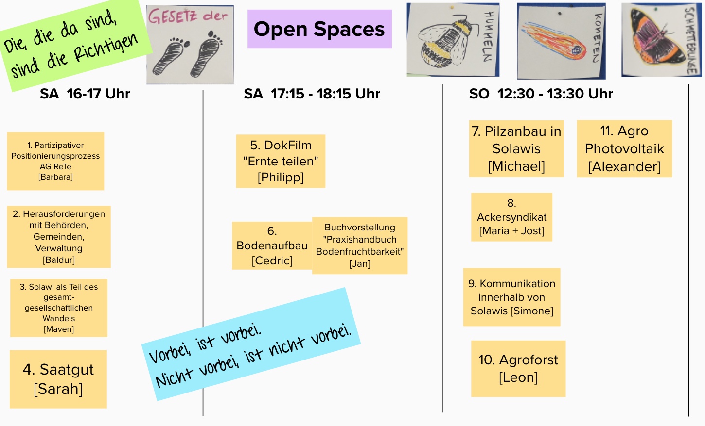 Samstag nachmittags gab es folgende Open Spaces: